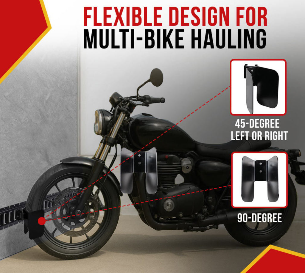 - Includes: Motorcycle Chock, E-Track Mount, 45-Degree Angle Adapter, Hardware